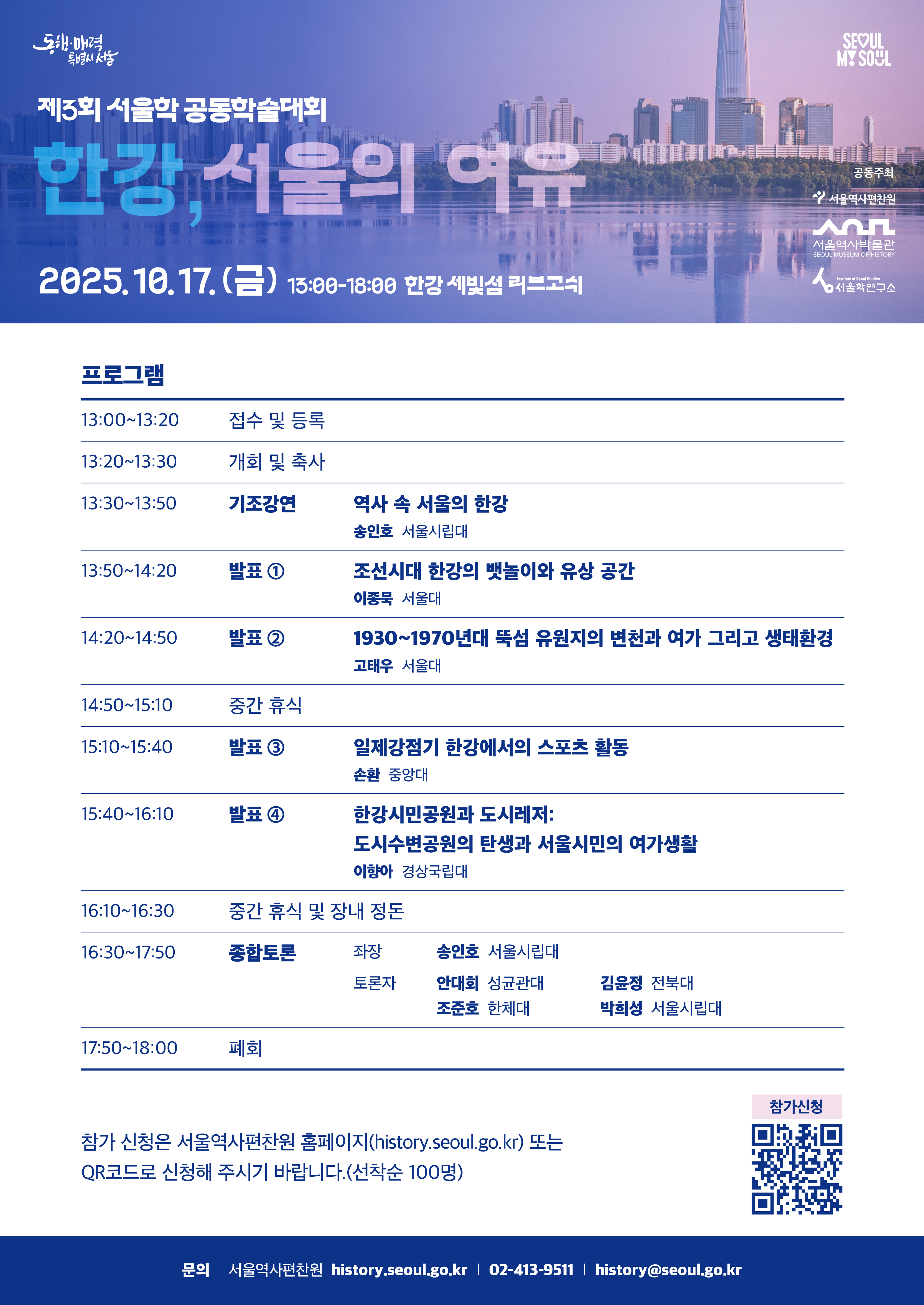 | [서울역사편찬원] 제3회 서울학 공동학술대회 <한강, 서울의 여유> |