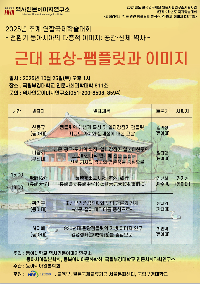 일시 : 2025년 10월 25일(토) 오후 3시~6시 장소 : 국립부경대학교 인문사회과학대학 611호 문의 : 역사인문이미지연구소(051-200-8593, 8594)